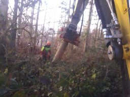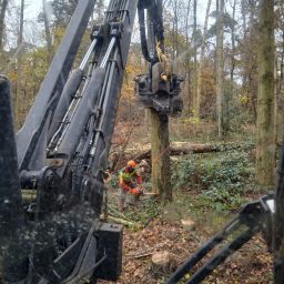wir bieten Ihnen Baggerarbeiten im Bereich forstwirtschaftlicher Flächen an, dass bedeutet wir legen für Sie neue Zuwegungen oder Rückewege an, des weiteren können wir mit unserem Roderechnen Flächen für eine Wiederaufforstung vorbereiten. Mit unserem ferngesteuerten Mulcher mit Seilwinde und einem Meter Arbeitsbreite können wir auf Nassflächen und an steilen Böschungen Vegetation heruntermulchen.
